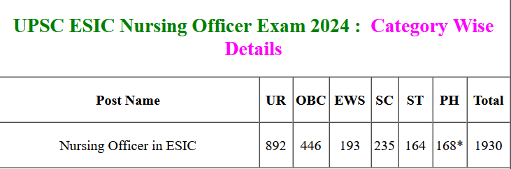 UPSC ESIC NO Recruitment 2024