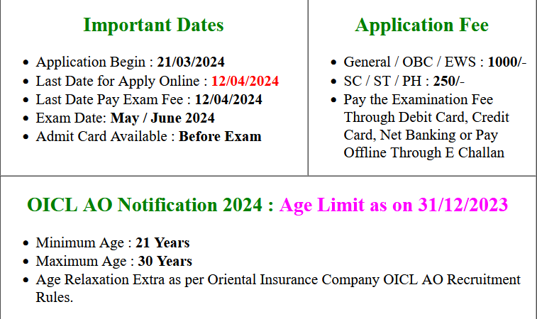 Oriental Insurance Company Limited (OICL) में Administrative Officer के पद पर काम करना एक गर्वपूर्ण और सम्मानजनक स्थिति हो सकती है, जो किसी भी candidates के career के विकास में मदद कर सकती है। इसलिए, सभी interested candidates को इस महत्वपूर्ण अवसर का लाभ उठाने के लिए अपने आवेदन को समय पर प्रस्तुत करना चाहिए।